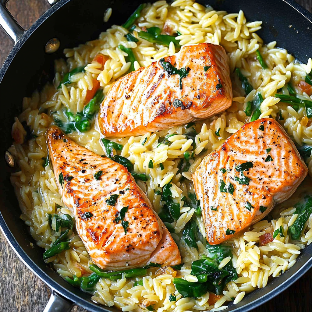 If you’re searching for a quick, flavorful meal that’s sure to impress, look no further than this One Skillet Salmon with Lemon Orzo. This recipe is perfect for busy weeknights when you want a healthy yet satisfying dinner without the hassle of multiple pots and pans. The combination of tender pan-seared salmon paired with zesty lemon orzo and vibrant spinach creates a delightful balance of flavors. Plus, it takes just 30 minutes from start to finish! Whether you’re cooking for your family or hosting friends, this all-in-one dish brings everyone together for a delicious dining experience.