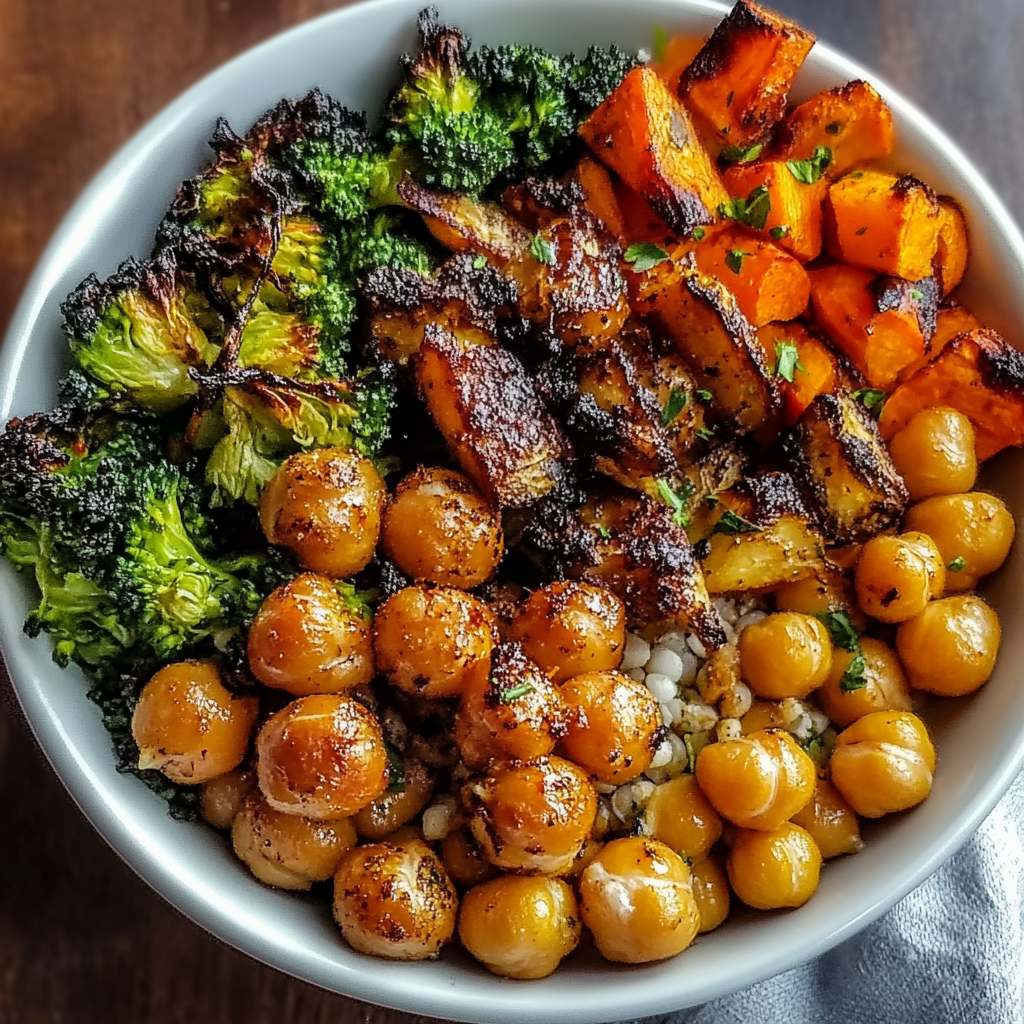 If you’re looking for a comforting and nutritious meal that checks all the boxes, then this Roasted Chickpeas and Veggie Bowl is just what you need! It’s one of those recipes that feels like a warm hug—perfect for busy weeknights or family gatherings. Loaded with vibrant veggies and crunchy chickpeas, it’s a delightful way to get your daily dose of greens while enjoying a burst of flavors. Plus, it’s quick to whip up, making it ideal for anyone who wants a healthy dinner without spending hours in the kitchen.